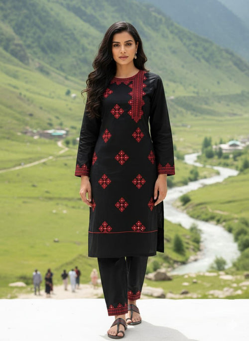 PREMIUM Black and Golden , Balochi hand Embroidery Kurta Trouser